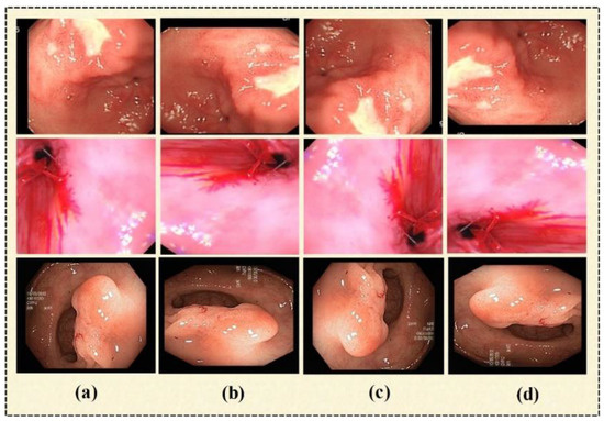 - Ghosh, T.; Bashar, S.K.; Alam, S.; Wahid, K.; Fattah, S.A. A statistical feature based novel method to detect bleeding in wireless capsule endoscopy images. In Proceedings of the 2014 International Conference on Informatics, Electronics & Vision (ICIEV), Dhaka, Bangladesh, 23–24 May 2014; IEEE: Piscateville, NJ, USA; pp. 1–4. [Google Scholar]