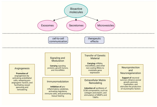 Mechanisms of action of microvesicle-, exosome-, and secretome-derived bioactive molecules in cell-free therapeutic approaches.