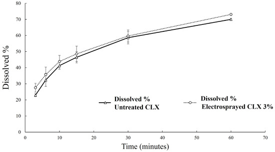 Figure 6. The dissolution profiles of untreated CLX and electrosprayed CLX in 3% w/v concentration.