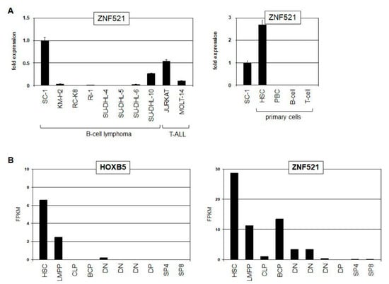 3.5. HOXB5 and ZNF521 in Stem Cells and B-Cell Lymphoma