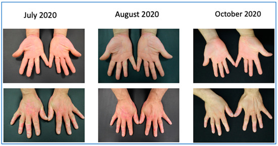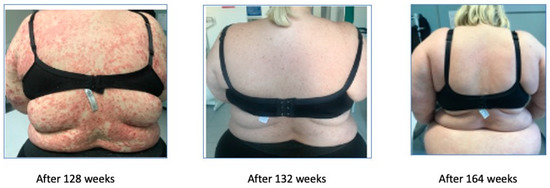 In July 2020, we started the therapy with risankizumab, which led to the gradual and complete remission of the symptoms in three months, as reported in Figure 9.