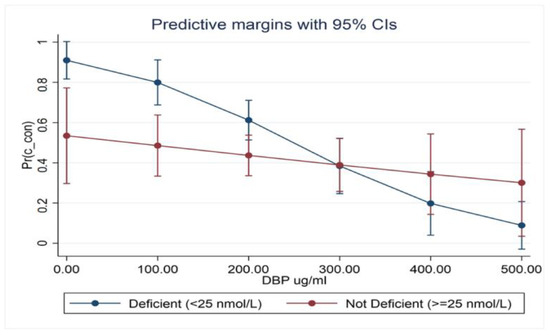- Serum 25(OH)D was within strata of DBP and appeared to be more strongly associated with MS when DBP levels were reduced (OR 1.71; 0.86–3.40, p = 126). This relationship is best demonstrated in the marginal probabilities diagram (Figure 1).