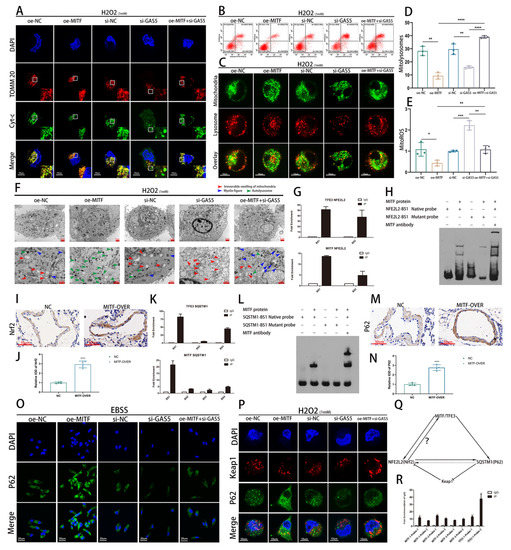 39]. We observed that GAS5 upregulated autophagy adapter protein and ECs with enhanced GAS5 expression typically maintain healthier mitochondrial populations. This sparked a pertinent inquiry: Does GAS5 regulate mitochondrial quality control (MQC) via mitophagy? However, our subsequent data seemed to counter this hypothesis, indicating that GAS5 predominantly suppressed mitophagy. The manifestation of mitophagy after GAS5 silencing seemed to be tied to the severity of oxidative stress. Under mildly oxidative conditions, GAS5 knockdown prompted mitochondria to transform into myelin-like figures, coupled with amplified mitophagy, suggesting that GAS5 silencing exacerbates oxidative damage but leaves the mitophagy mechanism intact. As oxidative stress escalated, the absence of GAS5 triggered irreversible mitochondrial swelling, alongside impaired mitophagy, culminating in cell death. In contrast, ECs that overexpressed GAS5 neither display mitochondrial swelling nor myelin-like figures, with only typical autolysosomes observed. We proposed that GAS5’s function represented a synergistic effect arising from MITF’s transcription of multiple genes. Notably, mitophagy was not the primary choice, as MITF additionally mediated Nrf2 transcription, which in turn inhibited mitochondrial oxidative damage via the MITF–Nrf2–ARE pathway. Concurrently, the normal functioning of mitophagy necessitated the antioxidant mechanism, providing a relatively stable intracellular environment.