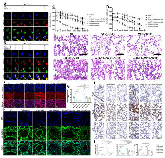 HUVECs were used for the FISH and colocalization assay. Shanghai GenePharma Biotechnology Co. Ltd. (Shanghai, China) designed and synthesized Cy3-labeled miR-23a-3p and miR-23b-3p probes, as well as fluorescein amidite (FAM)-labeled human-GAS5, MITF, and DGKE probes. The probe signals were detected using the Fluorescent In Situ Hybridization Kit (GenePharma Biotechnology, Shanghai, China), in accordance with the manufacturer’s instructions. During the procedure, miR-23a-3p and miR-23b-3p red fluorescent probes were incubated with GAS5, MITF, and DGKE green fluorescent probes. Paraffin sections of mouse lung tissue were used for the tissue FISH assay. The Cy3-labeled mouse GAS5 probe was designed and synthesized by Shanghai GenePharma Biotechnology Co., Ltd. (Shanghai, China). The probe signal was detected using a paraffin section fluorescence in situ hybridization kit (GenePharma Biotechnology, Shanghai, China), according to the manufacturer’s instructions. All photos were taken with a Nikon A1R Laser Scanning confocal microscope (Nikon A1R, Tokyo, Japan).