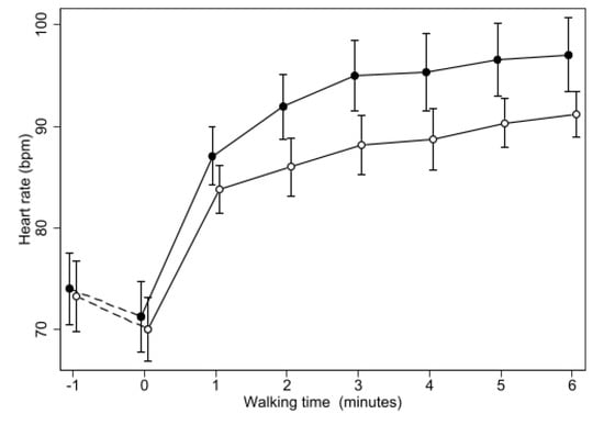 | Distance Walked (m) | 340 | (301–379) | 368 | (337–399) | 27.8 | (2.4–53.2) * |