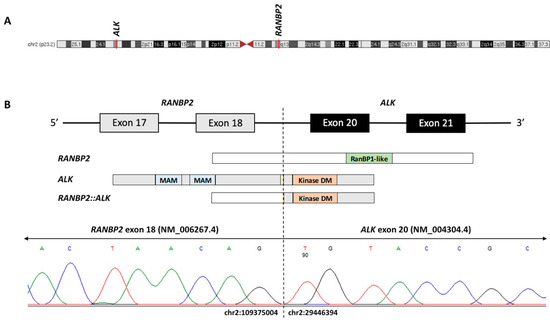 - Lim, J.-H.; Jang, S.; Park, C.-J.; Cho, Y.-U.; Lee, J.-H.; Lee, K.-H.; Lee, J.-O.; Shin, J.-Y.; Kim, J.-I.; Huh, J.; et al. RANBP2-ALK fusion combined with monosomy 7 in acute myelomonocytic leukemia. Cancer Genet. 2014, 207, 40–45. [Google Scholar] [CrossRef] [PubMed]