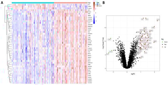 The differential abundances of 22 immune infiltrating cells were computed using the CIBERSORT algorithm (https://cibersort.stanford.edu/ (accessed on 10 January 2023)). Heatmaps and violin plots indicating immune cell correlation were prepared using the R packages “corrplot” and “ggplot2” [24]. The associations between OFGs and immune infiltrating cells were assessed using Spearman’s correlation coefficients, calculated using the R package “ggpubr”.