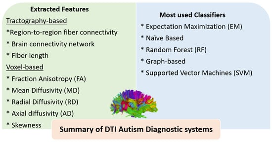 Summary of the most-utilized features and classifiers in different reported DTI autism diagnostic systems.
