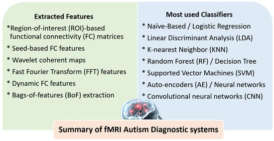 Summary of the most-utilized features and classifiers in different reported fMRI autism diagnostic systems.