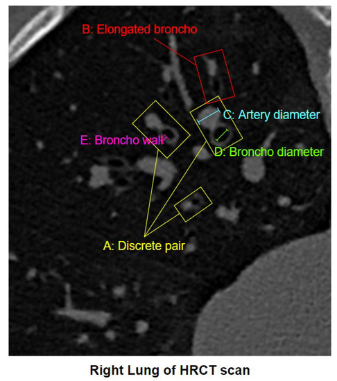 The recruitment of children was done prospectively at Royal Darwin Hospital, Northern Territory, Australia, as a part of a study concerning bronchoscopy in children having chronic wet cough. The children undergoing bronchoscopy were registered successively. For the present research, the HRCT scans of the children are used for further investigation with a computerized approach. This study was approved by the local Human Research Ethics Committee of the Northern Territory Department of Health and Menzies School of Health (Identifier: HREC 07/63) on 22 April 2022.