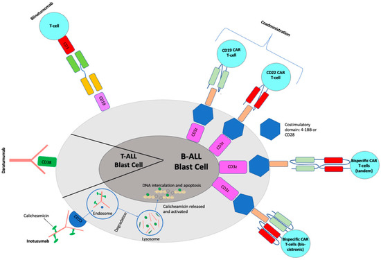 - Jasinski, S.; De Los Reyes, F.A.; Yametti, G.C.; Pierro, J.; Raetz, E.; Carroll, W.L. Immunotherapy in Pediatric B-Cell Acute Lymphoblastic Leukemia: Advances and Ongoing Challenges. Paediatr. Drugs 2020, 22, 485–499. [Google Scholar] [CrossRef] [PubMed]