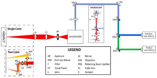 - Rust, M.J.; Bates, M.; Zhuang, X. Sub-diffraction-limit imaging by stochastic optical reconstruction microscopy (STORM). Nat. Methods 2006, 3, 793–795. [Google Scholar]