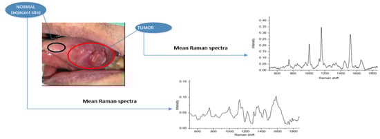- Knipfer, C.; Motz, J.; Adler, W.; Brunner, K.; Gebrekidan, M.T.; Hankel, R.; Agaimy, A.; Will, S.; Braeuer, A.; Neukam, F.W.; et al. Raman difference spectroscopy: A non-invasive method for identification of oral squamous cell carcinoma. Biomed. Opt. Express 2014, 5, 3252–3265. [Google Scholar] [CrossRef]