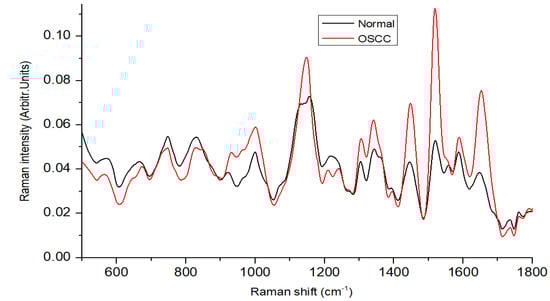 - Sharma, M.; Jeng, M.J.; Young, C.K.; Huang, S.F.; Chang, L.B. Developing an Algorithm for Discriminating Oral Cancerous and Normal Tissues Using Raman Spectroscopy. J. Pers. Med. 2021, 11, 1165. [Google Scholar] [CrossRef] [PubMed]