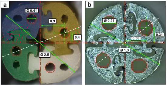 Figure 9 shows a cross-section comparison of the extrusion-manufactured (EM) and TD PBN segments viewed under a microscope. The findings indicate that this method reduced the diameter to about half of the state-of-the-art size while retaining full functionality and four working channels. We opted to halve the number of lumens per segment in order to maintain a 200-micron working channel in the smaller PBN for eventual integration with our fibre brag grating-based experimental setup [].