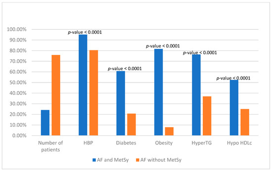 | Group | AF and MetSy (267 Patients) | AF without MetSy (843 Patients) | p-Value |