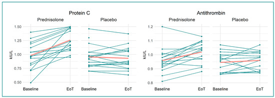 Protein C and antithrombin, two regulators of the coagulation pathways that had not been investigated in RCTs previously, both increased in response to prednisolone treatment.