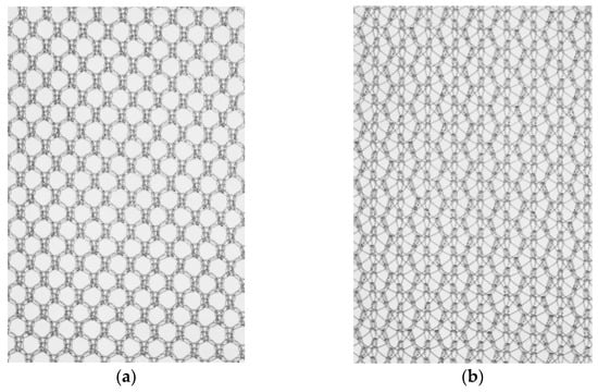 Structure of the different meshes: (a) represents standard structure with standard grade of filament linking; (b) represents bold structure with higher grades of filament linking.