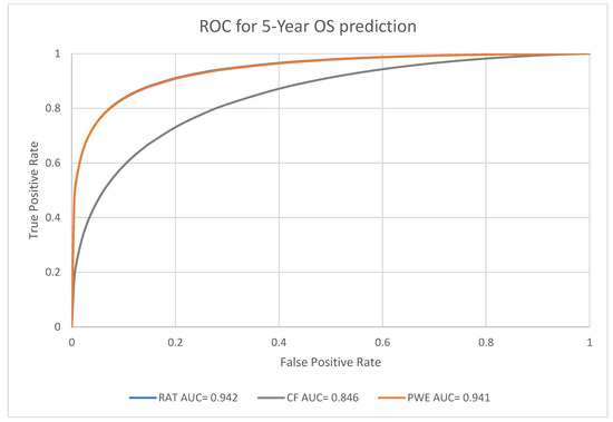 Prediction of 5-year survival using RAT, CF, and PWE models.