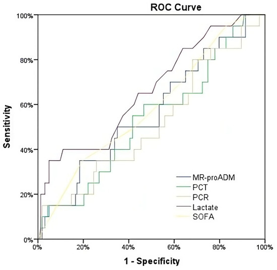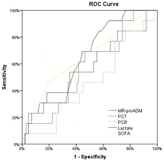 Therefore, we hypothesized that the biomarkers mid-regional pro-adrenomedullin (MR-proADM), procalcitonin (PCT), C-reactive protein (CRP), and lactate can help identify 28-day mortality in patients with sepsis and SOFA score ≤ 6.