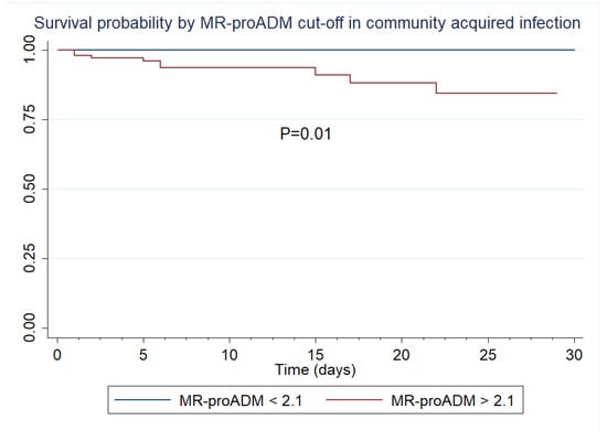 Figure 5. Kaplan–Meier survival curves by MR-proADM in community-acquired infection.