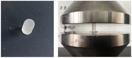 Figure 1. Testing the compressive strength on PMMA cylindric samples (PMMA and 3D-printed sample).