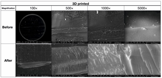 SEM imaging of the 3D-printed sample before and after flexural strength tests.
