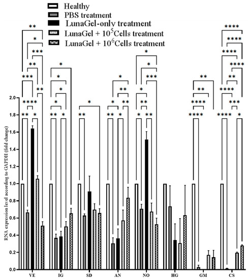- Pham, T.L.; Nguyen, D.P.-H.; Luu, T.T.-T.; Nguyen, L.S.; Binh, N.T.; Nguyen, Q.D.; Tran, P.A. Encapsulation of Human Umbilical Cord Mesenchymal Stem Cells in LunaGel Photocrosslinkable Extracellular Matrix and Subcutaneous Transplantation in Mice. Biomedicines 2023, 11, 1158. [Google Scholar] [CrossRef] [PubMed]