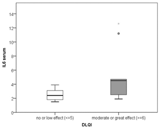 - Ucmak, D.; Akkurt, M.; Toprak, G.; Yesilova, Y.; Turan, E.; Yildiz, I. Determination of dermatology life quality index, and serum C-reactive protein and plasma interleukin-6 levels in patients with chronic urticaria. Postep. Dermatol. Alergol. 2013, 30, 146–151. [Google Scholar] [CrossRef] [PubMed]
