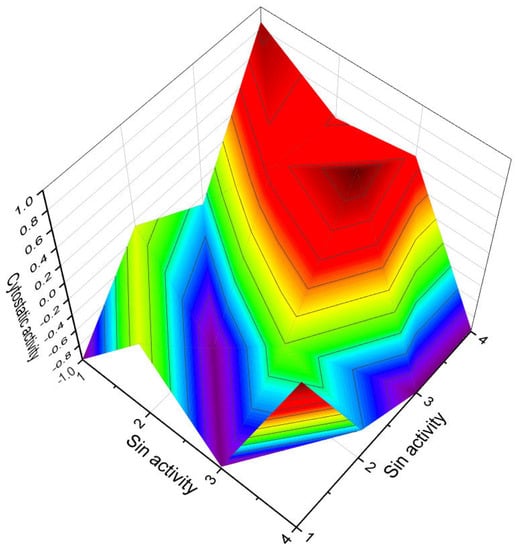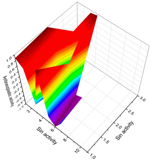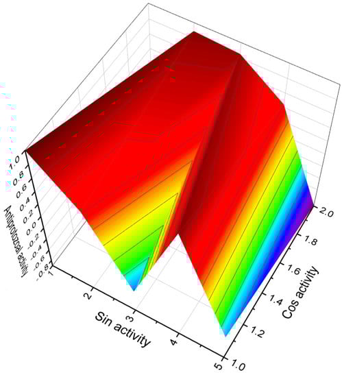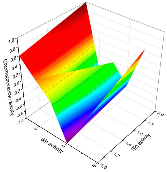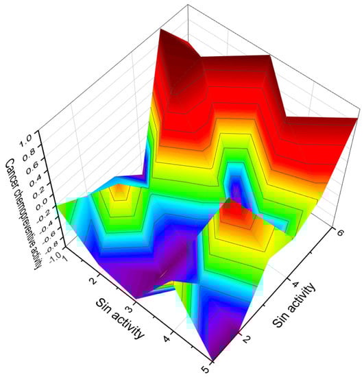3D graph depicting the predicted and calculated chemopreventive activity of steroids bearing an 8,9-epoxy group derived from the sponges Homaxinella sp. (48) and Microscleroderma spirophora (51). The graph provides insights into the relationship between the chemical structures of these compounds and their potential to exhibit chemopreventive activity. Chemopreventive activity refers to the ability of certain compounds to prevent, inhibit, or slow down the development or progression of cancer. These compounds can potentially interfere with carcinogenesis, suppress tumor growth, or enhance the body’s natural defense mechanisms against cancer cells. The high confidence level of over 90% indicates a strong likelihood of their chemopreventive activity. This suggests that these compounds may possess properties that could help prevent or inhibit the development of cancer. However, it is important to note that further experimental studies and validations are usually required to confirm the chemopreventive activity of these compounds and to investigate their underlying mechanisms. Overall, this information highlights the potential significance of these compounds in the field of cancer research and suggests their potential as candidates for the development of chemopreventive strategies.