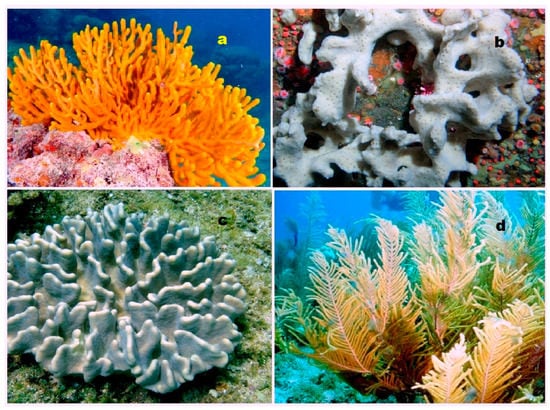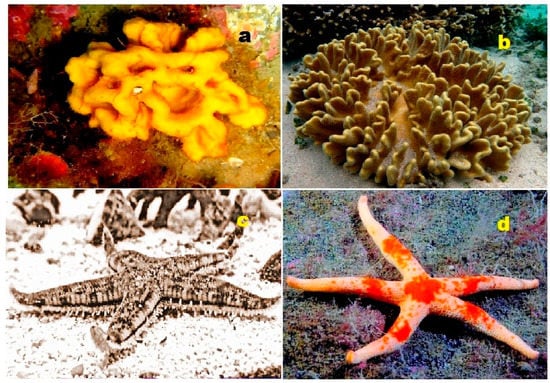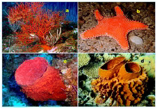 Specimens of marine organisms that have been the source of the discussed steroids. In particular, image (a) represents the gorgonian Leptogorgia sarmentosa, which is known to contain steroids (1–3). The image (b) corresponds to the Far Eastern starfish Hippasteria kurilensis, which is the source of steroid (4). The image (c) represents the marine sponge Xestospongia sp., which has yielded steroid (5). The image (d) provides another perspective of the marine sponge Xestospongia sp., highlighting its significance as a source of the mentioned steroid. These visual representations of the marine organisms help to establish a connection between the natural sources and the steroids under discussion. By observing these organisms, one can appreciate the diverse habitats and ecological niches from which these compounds are derived. The use of such imagery in scientific research aids in the documentation, identification, and understanding of marine organisms and their associated bioactive compounds.