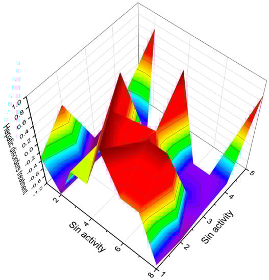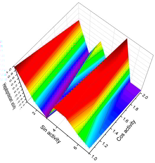 A 3D graph showing the predicted and calculated hepatoprotective activity of a steroid bearing a 7,8-epoxy group from the sponge Erylus goffrilleri (37) with over 99% confidence. It is known that aqueous or aqueous-alcoholic extracts of the leaves or roots of some plants, such as Andrographis rissumte, Eclipta alba, Phyllanthus maderaspatensis, Picrorrhiza kurroa, Silibum marianum or Trichopus zeylanicus, have a hepatoprotective effect. However, the fact that the steroid bearing a 7,8-epoxy group from the sponge Erylus goffrilleri has hepatoprotective activity with the highest degree of certainty is an extremely rare case.