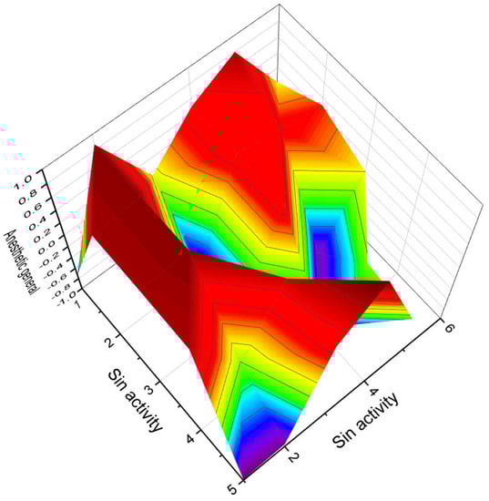 3D graph illustrating the predicted and calculated respiratory analeptic activity of steroids bearing a 5,6-epoxy group. Specifically, compounds 24, 27, and 28, which were isolated from marine sources, are represented in the graph. The graph provides insights into the relationship between the chemical structure of these compounds and their potential to exhibit respiratory analeptic activity. Respiratory analeptic activity refers to the ability of certain compounds to stimulate and enhance respiratory function, particularly in cases of respiratory depression or impairment. The respiratory analeptic activity shown by three 5,6-epoxy steroids, two from the soft coral Clavularia viridis (24) and the coral Sarcophyton trocheliophorum (27) and a third steroid (28) from the marine sponge Ianthella sp., can be called a great success. These compounds can have therapeutic potential in conditions such as respiratory distress or respiratory depression caused by various factors. The high confidence level of over 97% suggests a strong likelihood of their respiratory analeptic activity. This indicates that these compounds have the potential to stimulate and enhance respiratory function. However, it is important to note that further experimental studies and validations are typically required to confirm the respiratory analeptic activity of these compounds and to explore their underlying mechanisms.