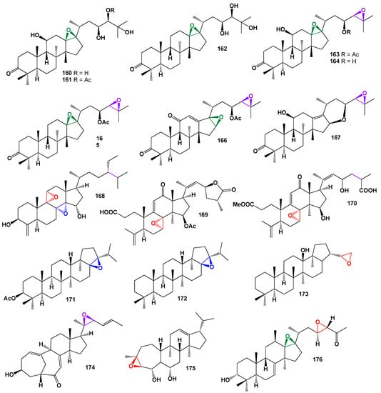 Steroids bearing 7,8- and 8,9-epoxy group(s). Crimson indicates 7,8- and light brown indicates 8,9-epoxy group(s).