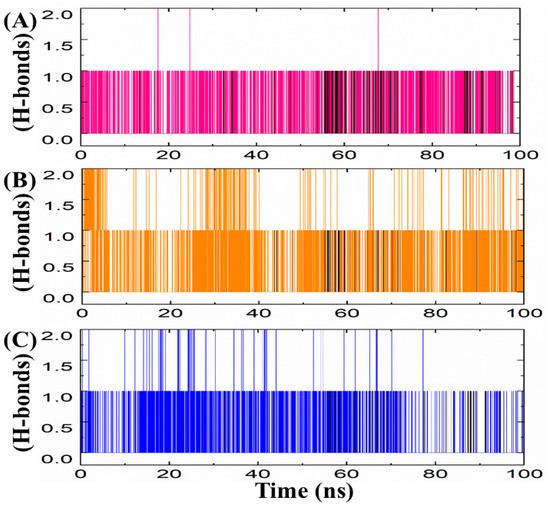 3.3.4. Hydrogen Bond (Polar Interactions) Analyses