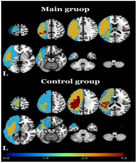 The superposition of lesion localization in the patient groups is shown in Figure 1.