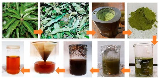 - Banerjee, P.; Satapathy, M.; Mukhopahayay, A.; Papita Das, P. Leaf extract mediated green synthesis of silver nanoparticles from widely available Indian plants: Synthesis, characterization, antimicrobial property and toxicity analysis. Bioresour. Bioprocess. 2014, 1, 3. [Google Scholar] [CrossRef]