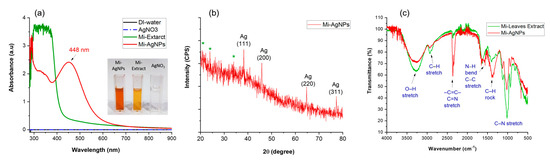 2.2. Characterization of Biosynthesized Mi-AgNPs