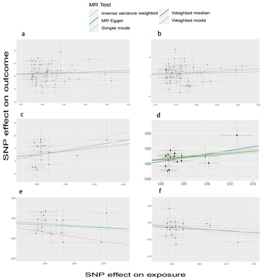 - Burgess, S.; Thompson, S.G. Interpreting findings from Mendelian randomization using the MR-Egger method. Eur. J. Epidemiol. 2017, 32, 377–389. [Google Scholar] [CrossRef] [PubMed]