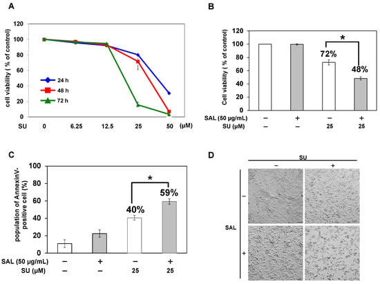 3.3. Combined Effects of SAL and SU in TOS1 Cells