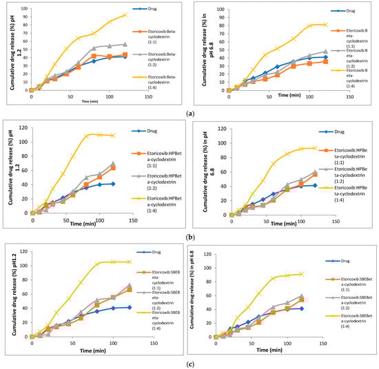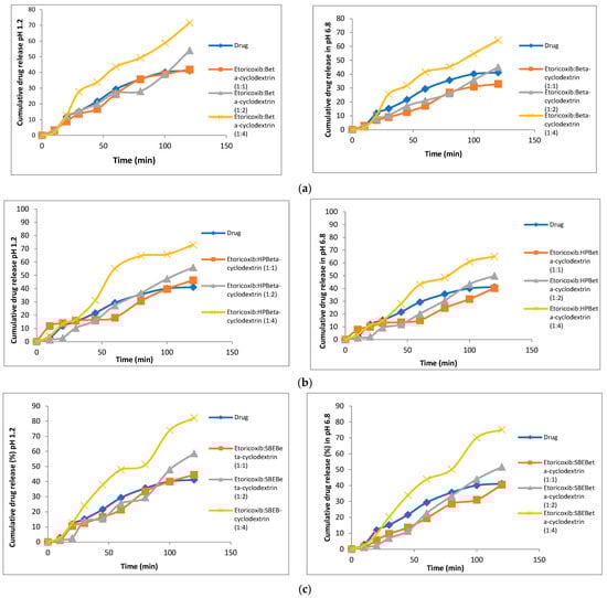 | Etoricoxib: SBE β-CD | 1:1 | 93.44 ± 1.05 | 93.00 ± 1.27 | 115.18 ± 1.95 | 112.98 ± 1.99 |