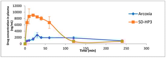| Bioavailability Parameters | SD-HP3 ± S.D | Arcoxia® ± S.D |