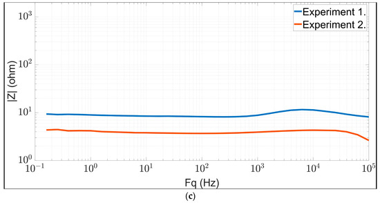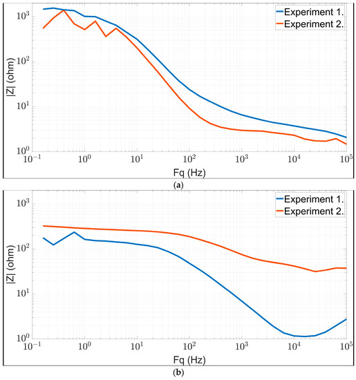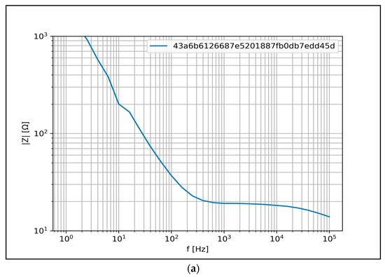 During the BIS measurements, the Z impedance of the tested material spectrum data was calculated at each frequency point using the potential values u2, u3 and u4 according to the equation presented in Section 2.1.1 [38].
