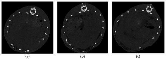 Microcomputed tomography (micro-CT) scans of Wistar rats: (a) SAF 0+0+0 (control animal) group, (b) SAF 1+0+0 group (35% high-fat diet animal) and (c) SAF 2+0+0 group (70% high-fat diet animal).