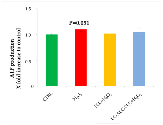 Analysis of ATP production of GV oocytes exposed to PLC or to LC–ALC–PLC for 2 h prior to H2O2. Data show mean ± SEM.