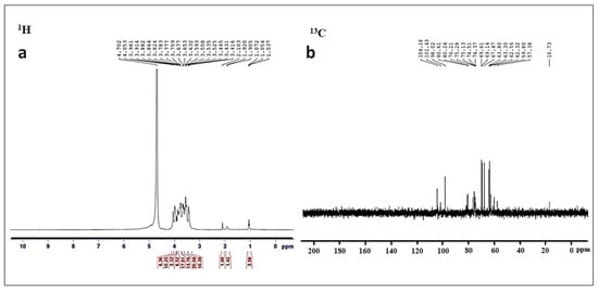 Figure 5. NMR characterization strain MKUST-01 EPS: (a) 1H NMR spectrum and (b) 13C NMR spectrum.