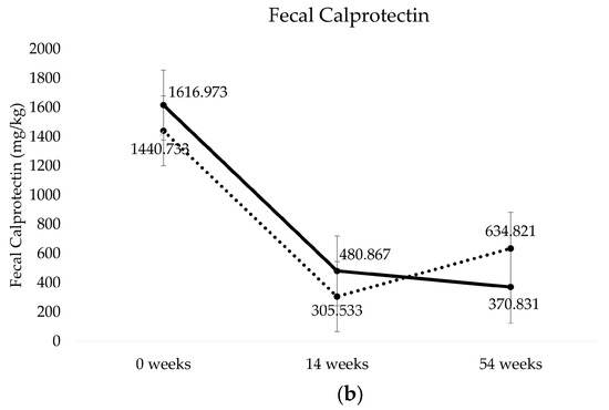 - Turner, D.; Griffiths, A.M.; Walters, T.D.; Seah, T.; Markowitz, J.; Pfefferkorn, M.; Keljo, D.; Otley, A.; Leleiko, N.S.; Mack, D.; et al. Appraisal of the pediatric Crohn’s disease activity index on four prospectively collected datasets: Recommended cutoff values and clinimetric properties. Am. J. Gastroenterol. 2010, 105, 2085–2092. [Google Scholar] [CrossRef]