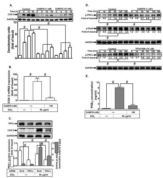29]. A significant revelation emerged concerning the impact of SiNPs on PKCα phosphorylation. This phenomenon was substantiated by experiments where the specific inhibition of PKCα using Gö6976 and siRNA-mediated knockdown of PKCα influenced SiNPs-induced COX-2 expression and PGE