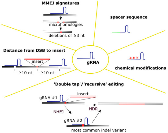 Various parameters of gRNA have been investigated to improve the level of cleavage and the efficiency of knock-in in particular (see Figure 1).
