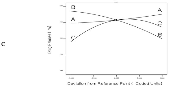 The quadratic polynomial equations expressed the effect of formulation factors in the drug release: